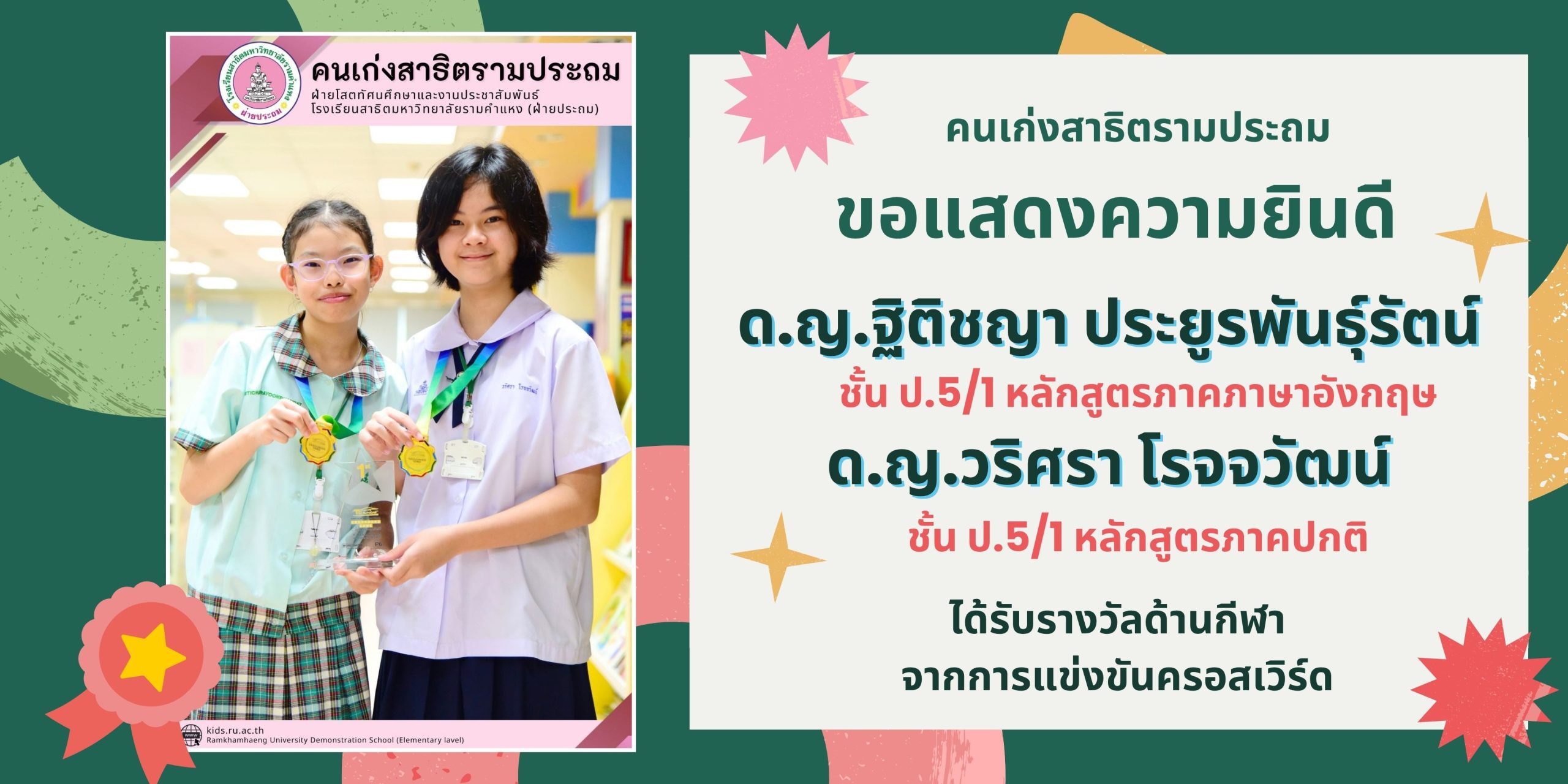 และ ด.ญ.วริศรา โรจจวัฒน์ ชั้น ป.5/1 หลักสูตรภาคปกติ