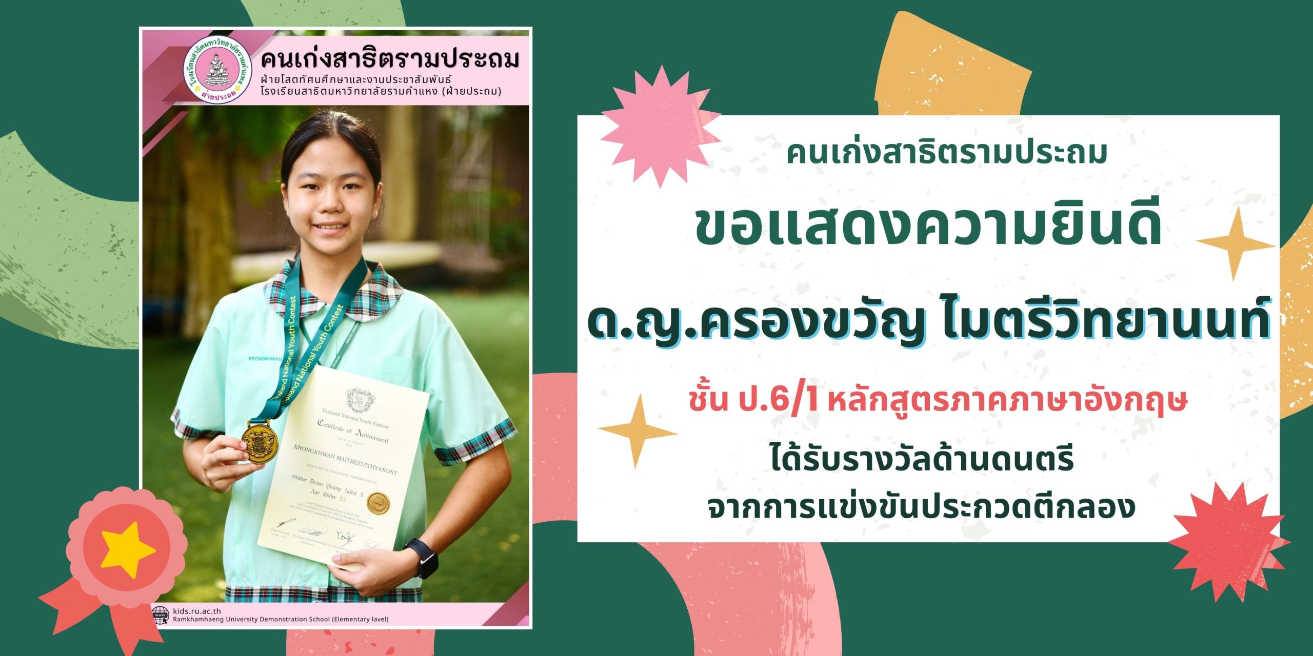 ด.ญ.ครองขวัญ ไมตรีวิทยานนท์ ชั้น ป.6/1 หลักสูตรภาคภาษาอังกฤษ