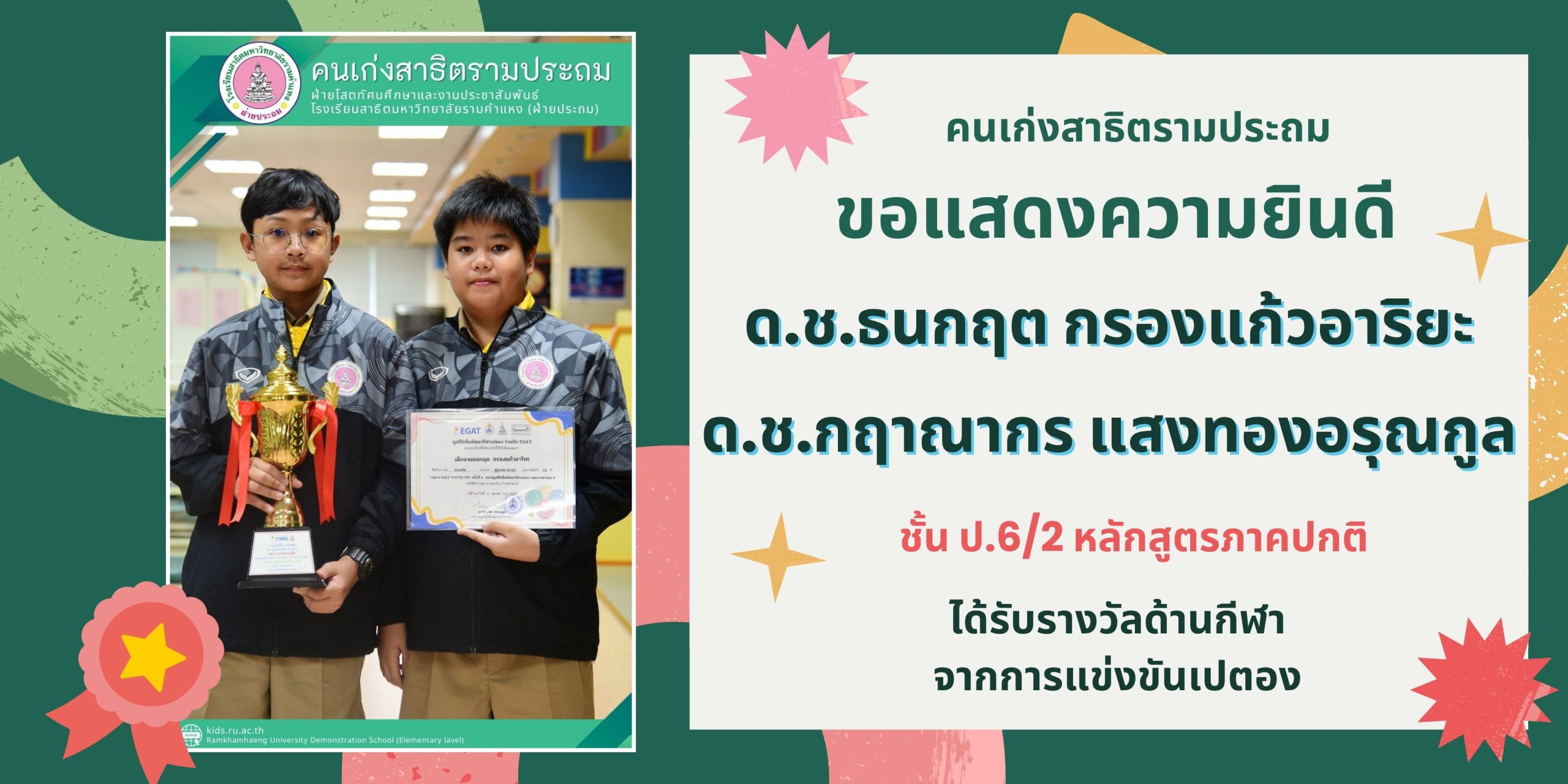 ด.ช.ธนกฤต กรองแก้วอาริยะ ชั้น ป.6/2 หลักสูตรภาคปกติ และ