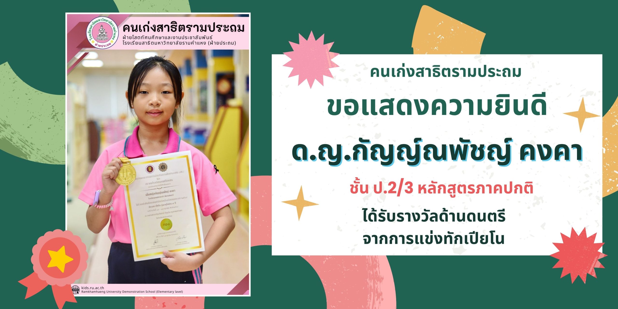 ได้รับรางวัลด้านดนตรี จากการแข่งทักเปียโน