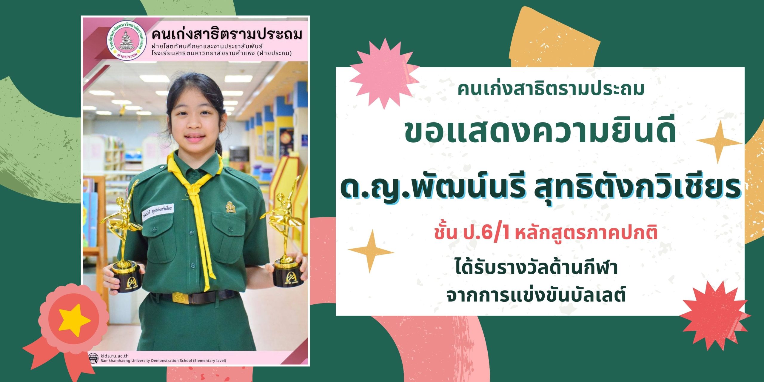 ด.ญ.พัฒน์นรี สุทธิตังกวิเชียร ชั้น ป.6/1 หลักสูตรภาคปกติ