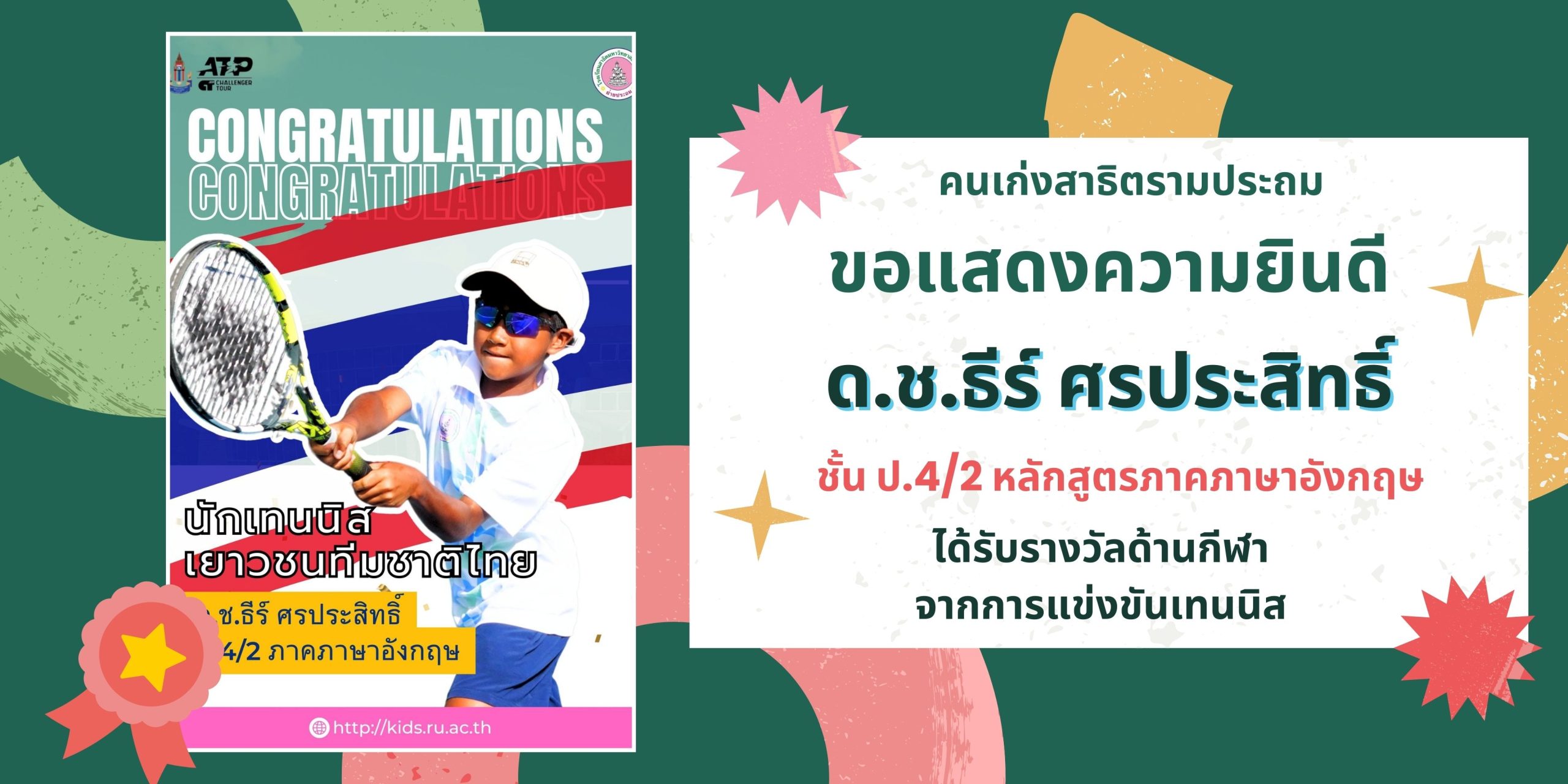 ได้รับการคัดเลือกเป็นนักกีฬาเทนนิสเยาวชนทีมชาติไทย ประจำปี 2569