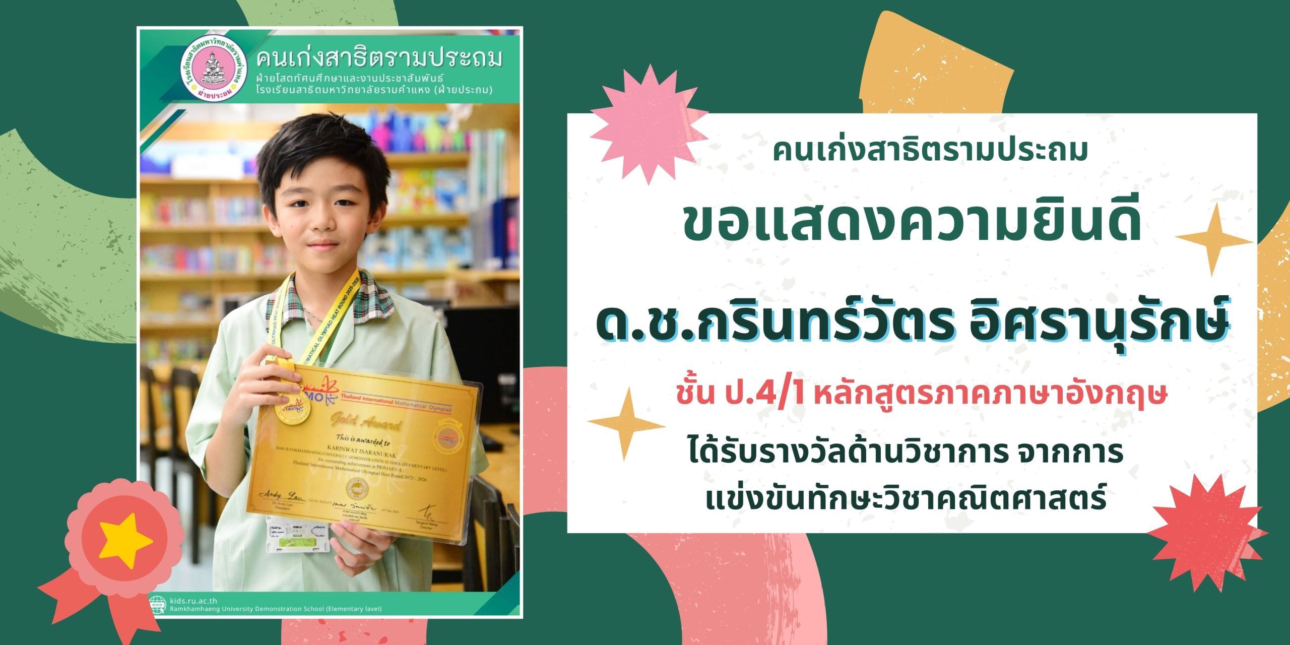 ด.ช.กรินทร์วัตร อิศรานุรักษ์ ชั้น ป.4/1 หลักสูตรภาคภาษาอังกฤษ