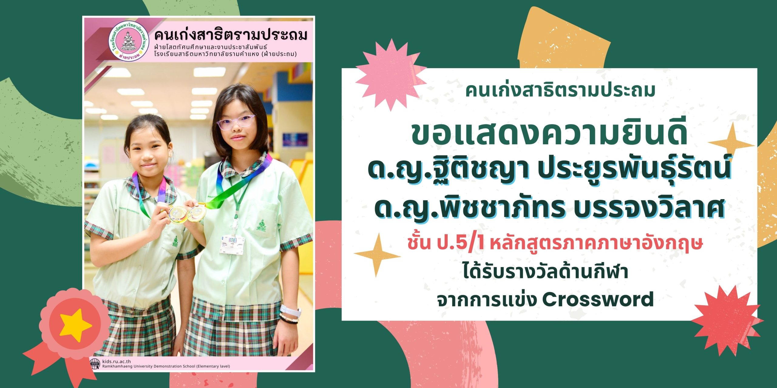 ได้รับรางวัลเหรียญทอง รุ่นประถมศึกษา การแข่งขัน Crossword